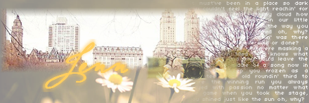 Basically, I took 3 pictures, a text thing and song lyrics :P It's a base picture with the flowers, and then a picture of the buildings with a faded border to make it kind of blend-ish. Then, I took the last picture and chopped it into 3 squares and faded the borders there and put it on the bottom of the second layer. I took the lyrics from, "Why" by Rascal Flatts (who I'm OBSESSED with right now) and the Jenn part was all me.